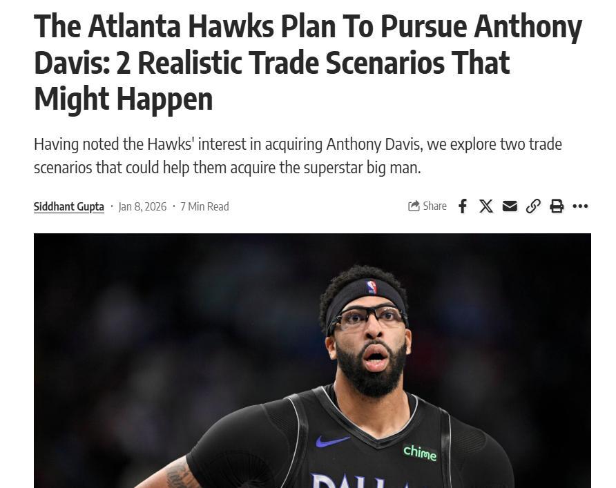 名记Shams在后续报道中指出,老鹰队之所以如此廉价卖掉特雷杨,提升薪金灵活性以在交易截止日前引进另外一名顶薪球员是重要原因之一,而浓眉哥是他们的头号目标。