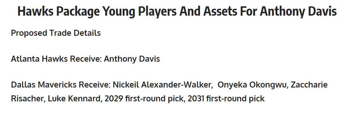 如果老鹰队下定决心想要得到浓眉哥,也做好了提供大额续约合同的准备,那么这笔交易方案完全值得考虑。