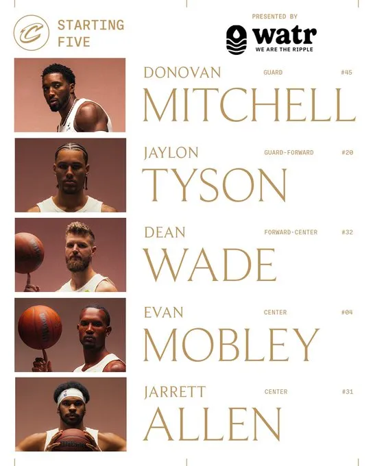 虎扑01月24日讯 骑士更新官方社媒,公布了球队今日的首发阵容。